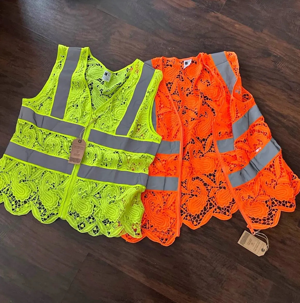 Designed to stand out, the Lace Safety Vest is a bold fusion of visibility and style.